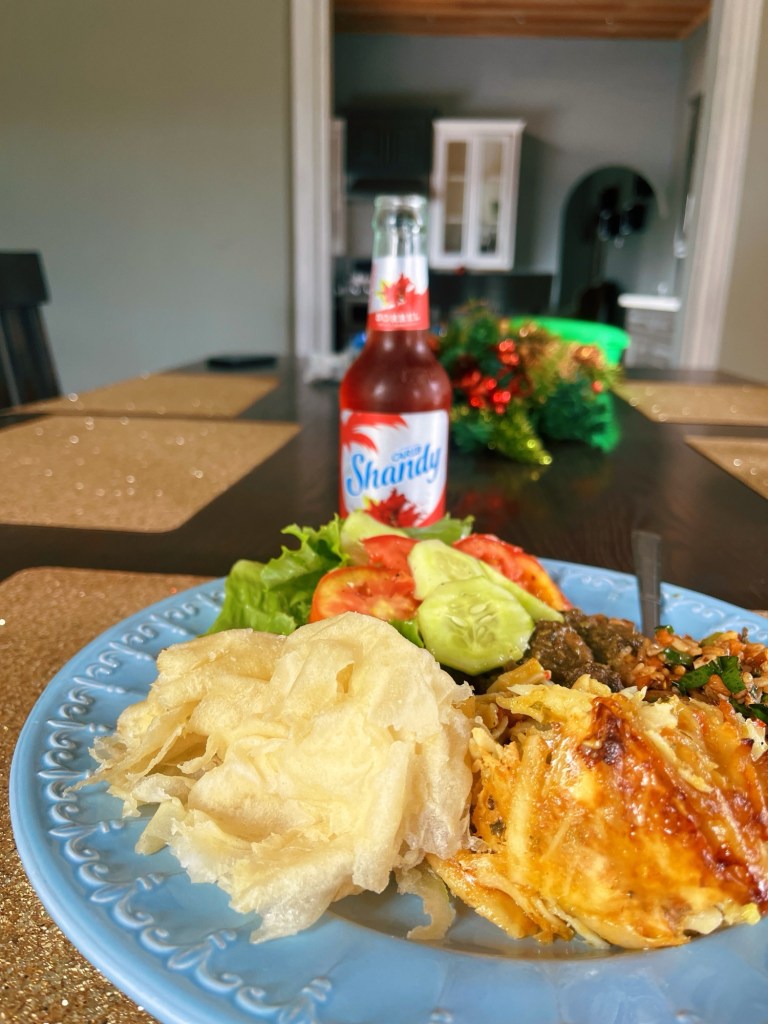 On Christmas day, we had Christmas dinner at my grandma’s house. Then we went house hopping to two other relatives’ houses. In Trinidad, it is common for people to go from house to house, eat, bring gifts and sweets, chat for a little, and then move on to the next house. It is called paranging. We did the same on boxing day. When I tell you, I probably gained like 10 pounds from the delicious food I consumed. It was a time. Food from both days consists of fried rice, macaroni pie, duck, , lamb, gouti, bussup-shut roti, bbq chicken, ham, black cake, pone, sweet bread, poncho de crème(drink) and LOTS of my mama’s famous sponge cake (I TORE THAT UP😛)